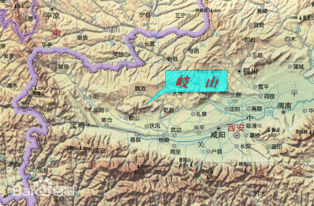 - 현재 주소: 섬서성 보계시 기산현 / 산시성 바오지시 치산현