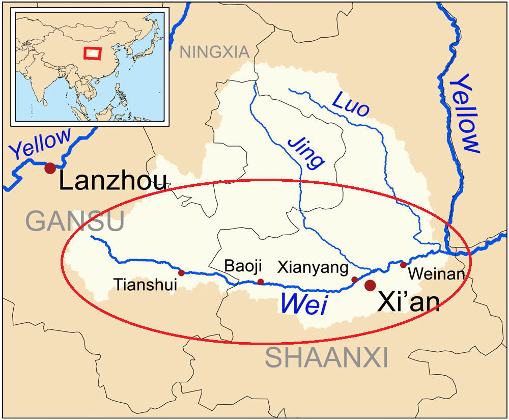 남으로 위수(渭水)와 북으로 기산(岐山)을 배산임수 형태로 끼고 발달한, 평야지대인 주원(周原)에서 상나라 제후국 주(周)는 처음 발흥하게 되었다.